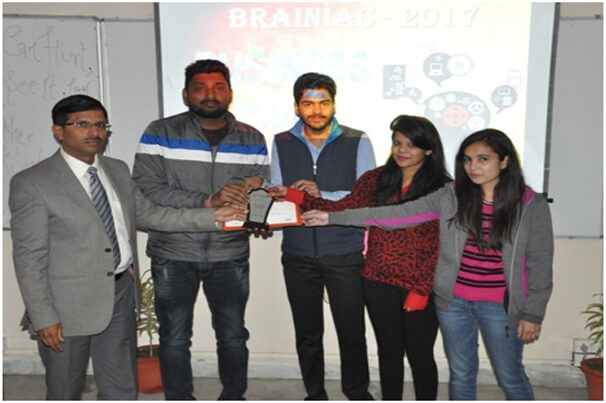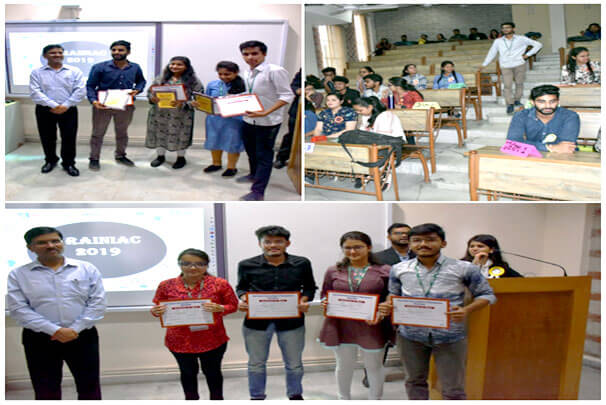 An intra-college quiz competition "Brainiac-2017" was organised on 6th October, 2017. Quiz witnessed participation from 8 teams which after elimination in various rounds were restricted to final three teams. Ekta Sabbarwal and Abhishek Raj Gupta were the Quiz masters. Prashant Kumar and Rashid Hussain were the Score masters' for the event and IT support was handled by Varun Pandey.