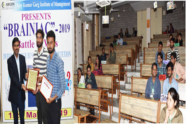 AKGIM organised "Brainiac-2017" ,Battle of Wits – Intra College Quiz Competition on 28th January 2017. Competition witnessed participation from eight different teams which after elimination in various rounds were restricted to final three teams. Ms. Neha Singh and Mr. Samar Chauhan were the Quiz masters. Ms. Neelam Chaudhary and Mr. Amit Sengar were the Score masters' for the event.